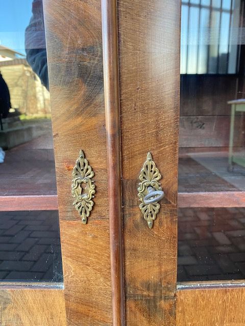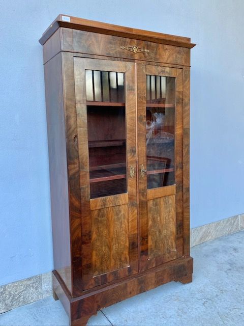 Antica ed Elegante Libreria Impero in Mogano e Piuma di Mogano.