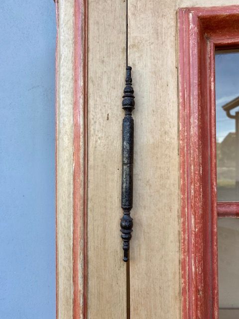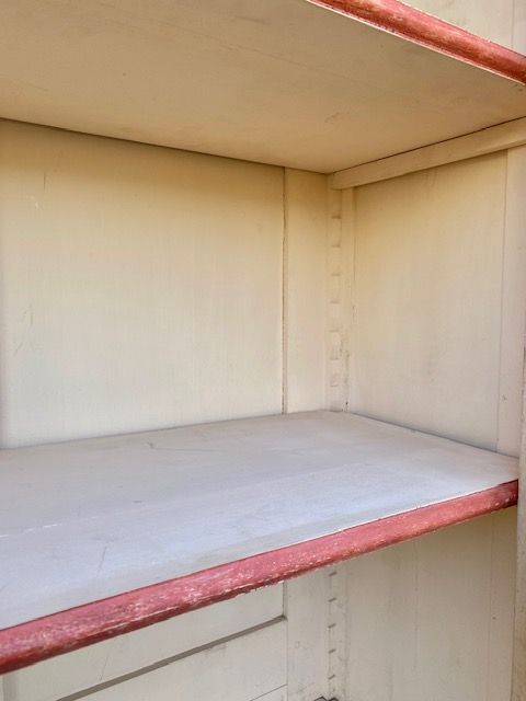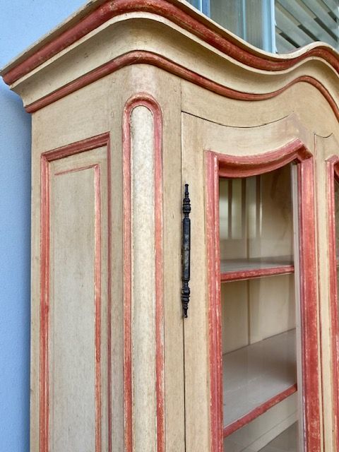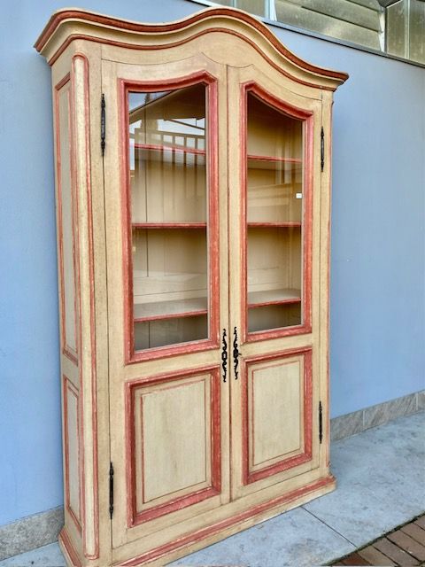 Antica Libreria Laccata Bianco Panna, profili rosso carminio.
