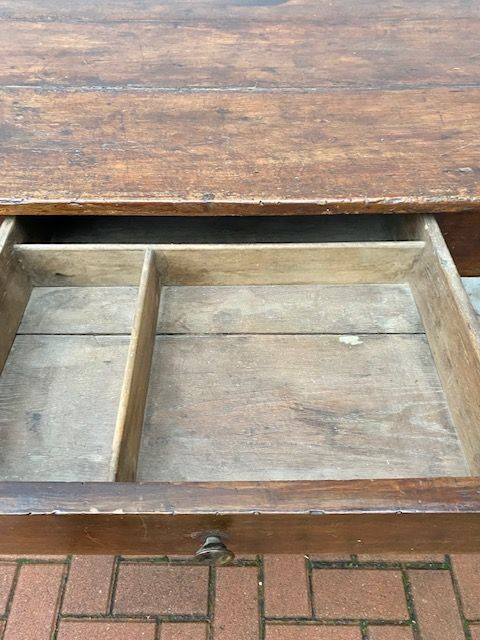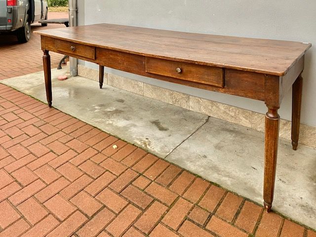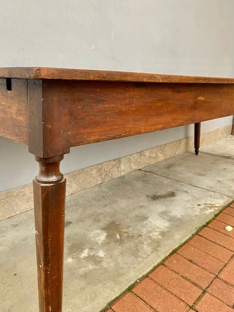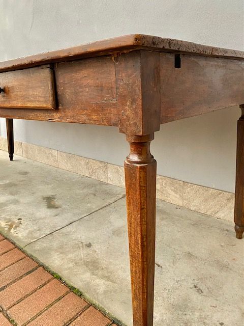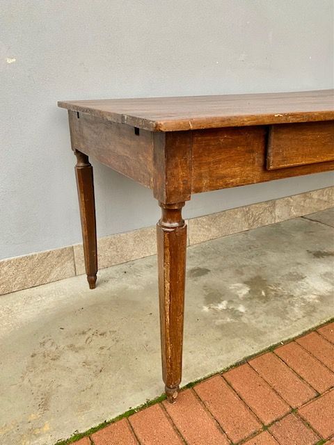 Antico Tavolo Luigi XVI Emiliano in Noce presenta 2 cassetti.