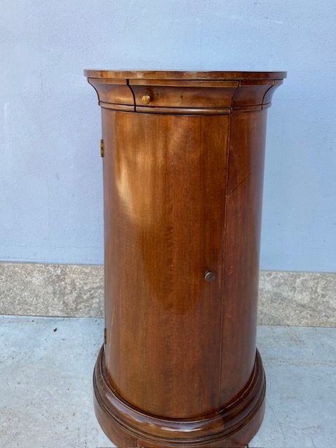 Comodino a Cilindro Impero in Mogano.