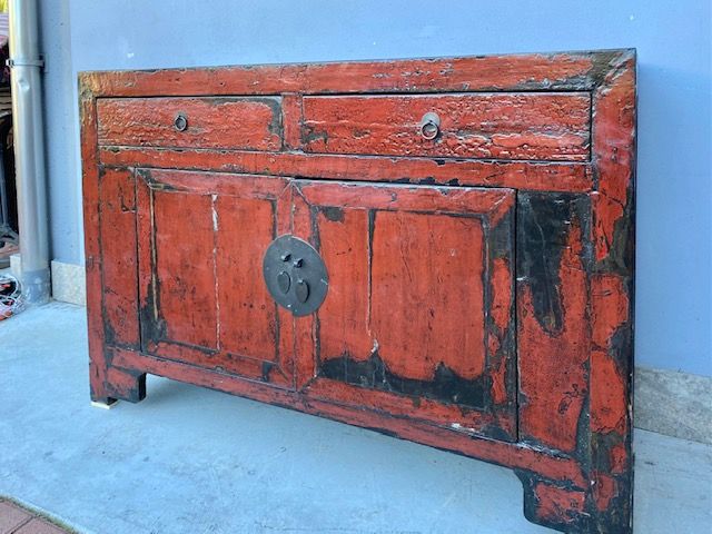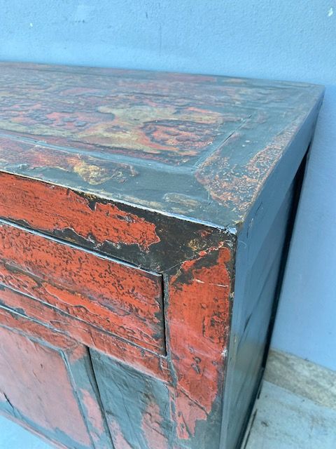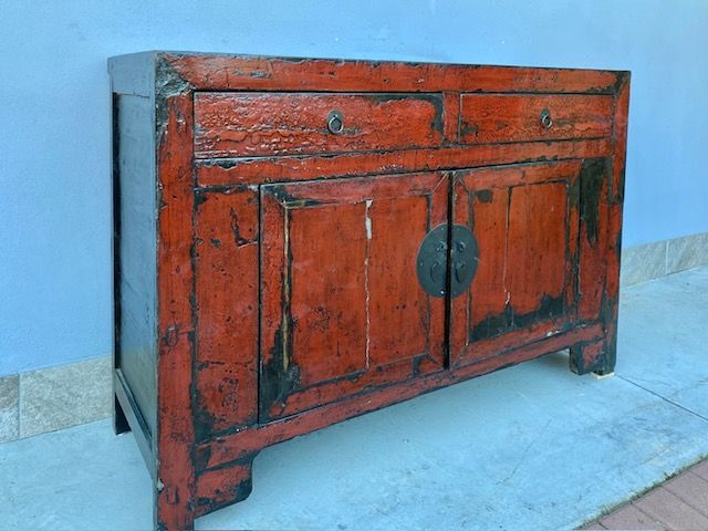 Credenza di Gusto Orientale Laccata Rossa-Restaurata (in corso d'opera)_car 3149