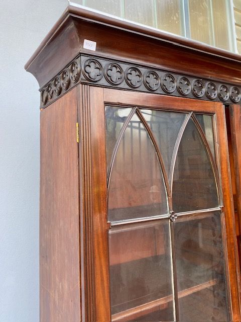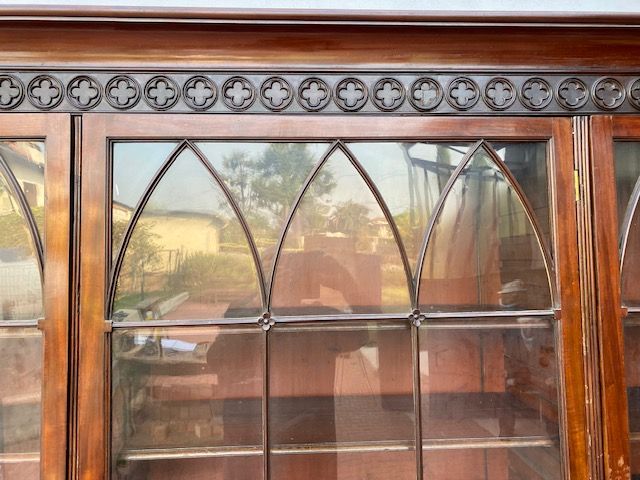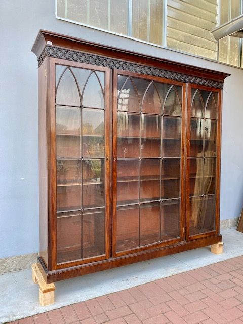 Importante Libreria Inglese in Mogano, a 3 Porte.
