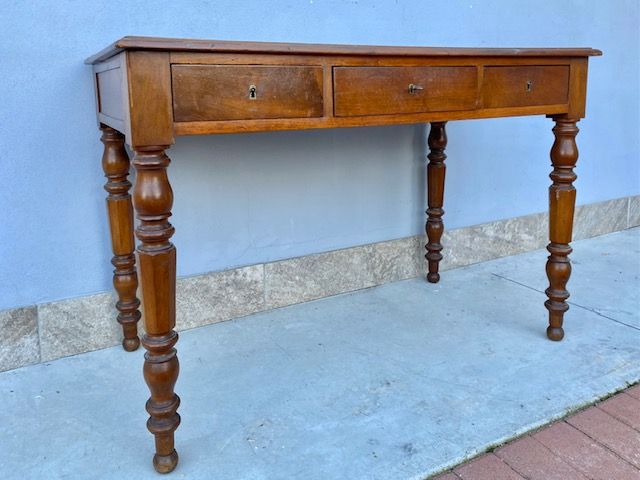 Scrittoio Tavolino Luigi Filippo in Noce, a 3 cassetti.