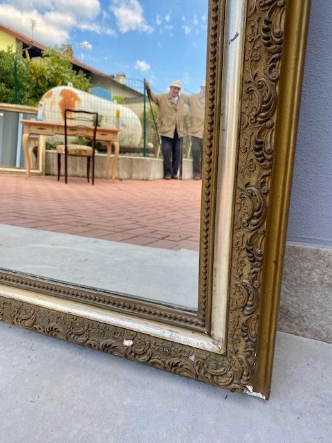 Specchiera Luigi Filippo con Cimasa in Legno e Pastiglia Dorata e Argentata.