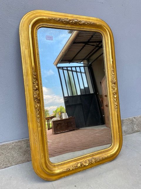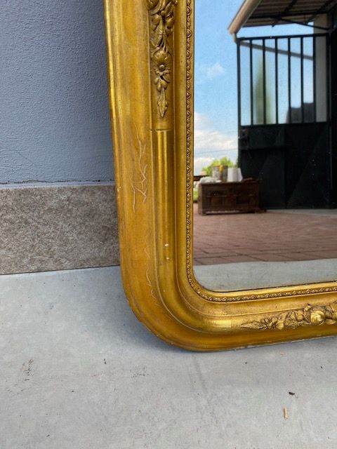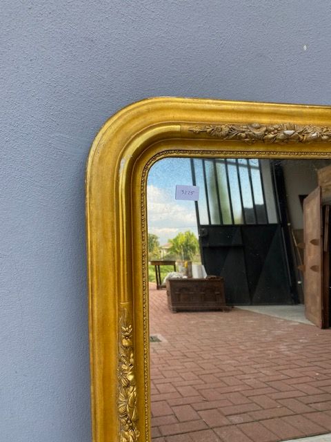 Specchiera Luigi Filippo in Legno e Pastiglia Dorata a Foglia.