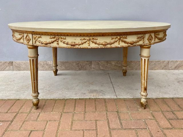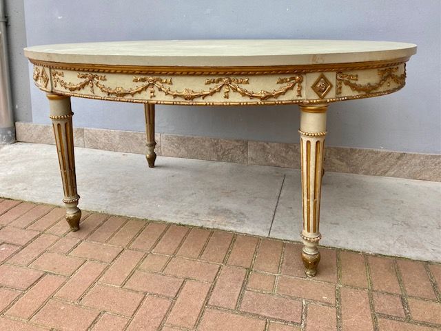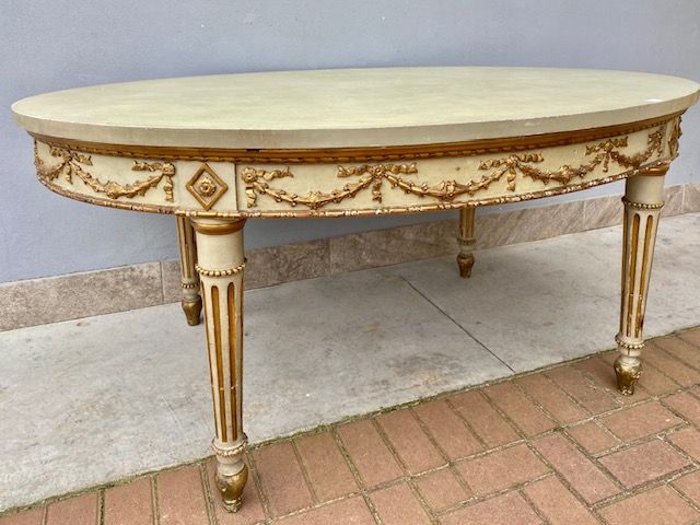 Tavolo Ovale in Stile Luigi XVI Laccato e Dorato.