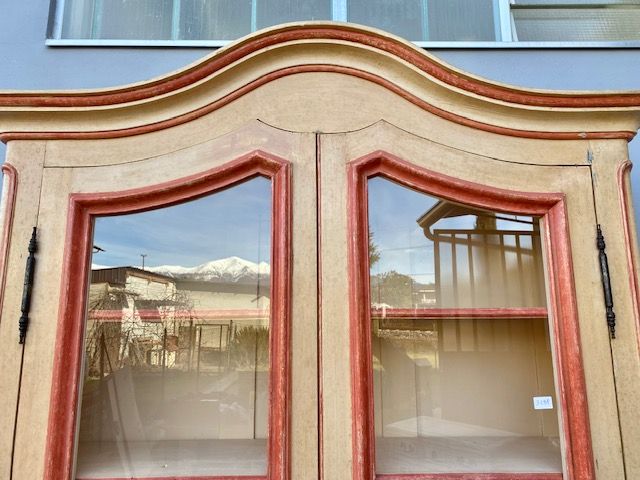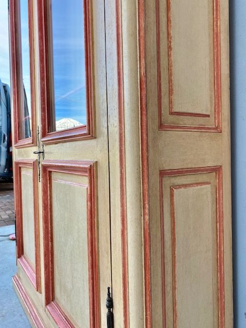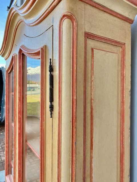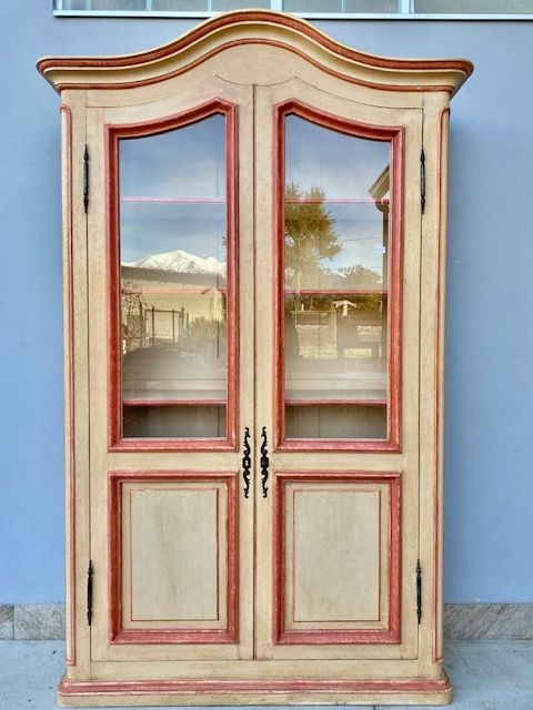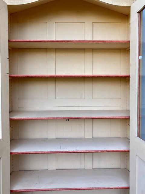 Ancient Bookcase Lacquered Cream White, carmine red profiles.