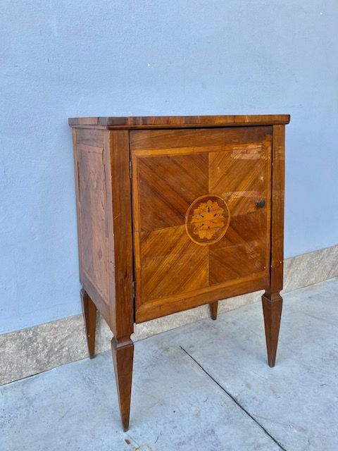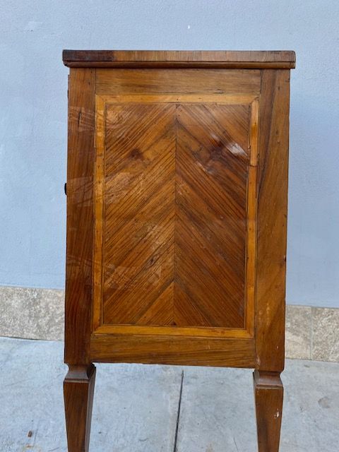 Ancient Louis XVI Bedside Table Veneered and finely inlaid in various woods.