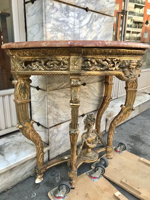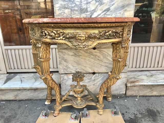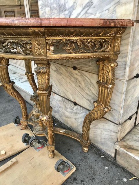 Important console table Louis XVI, in carved wood gilded with leaf.