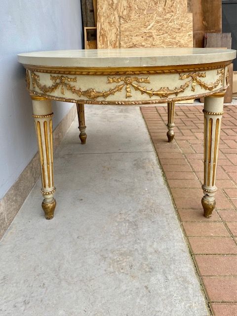 Lacquered and Gilded Oval Table in Louis XVI Style.