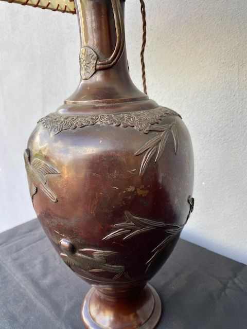 Pair of Lamp-mounted Bronze Vases - Reconditioned_car 3214