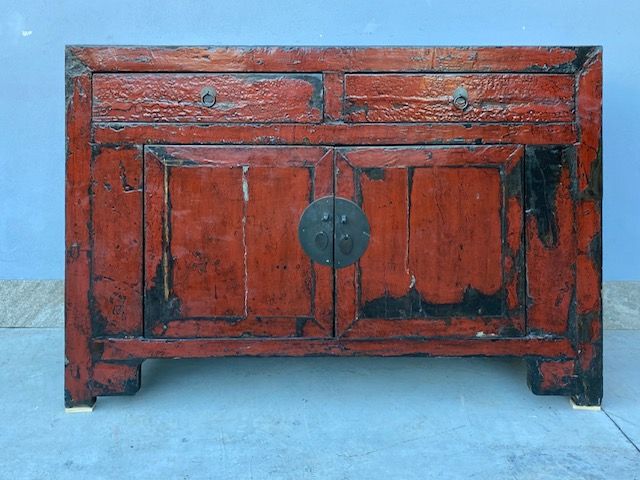 Red Lacquered Oriental Taste Sideboard-Restoration (in progress)_car 3149 - Code 3149