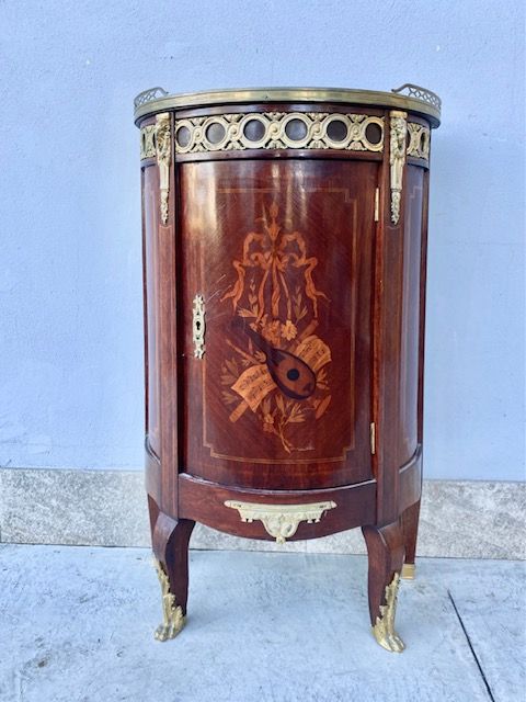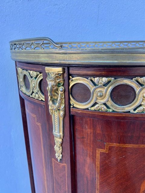 Small Half-Moon Cabinet in Mahogany, with brass inlays.