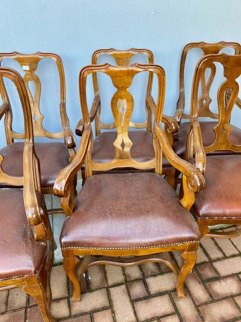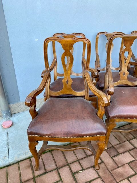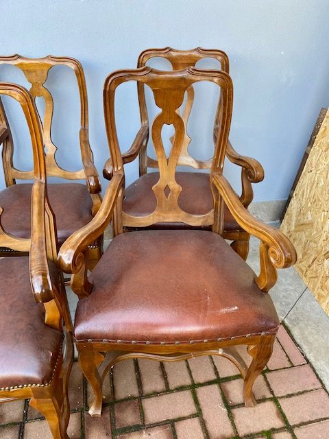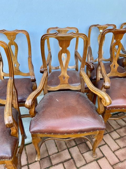 Lotto di 10 Poltrone in Noce in Stile Classico,
