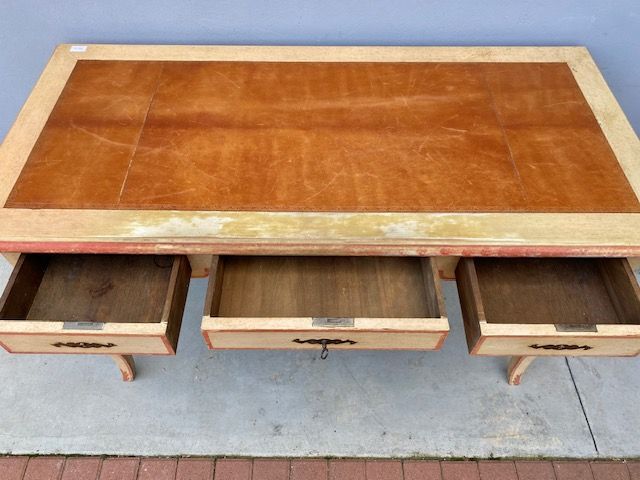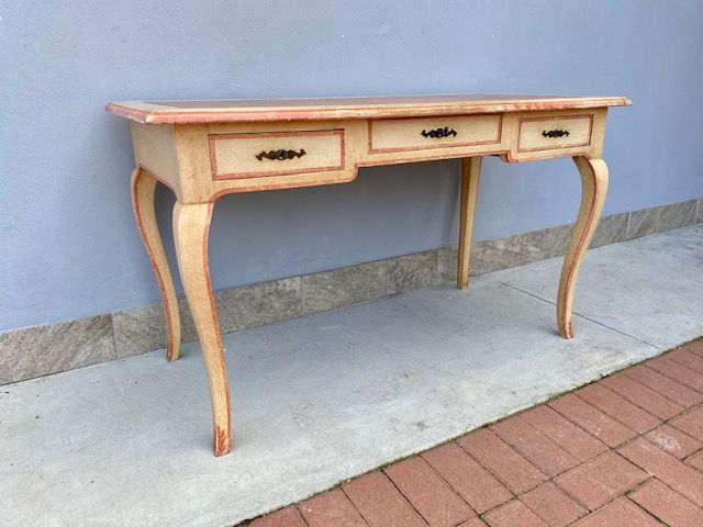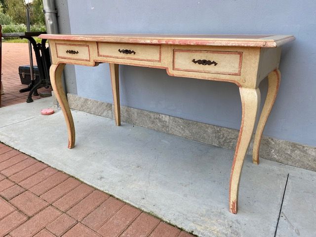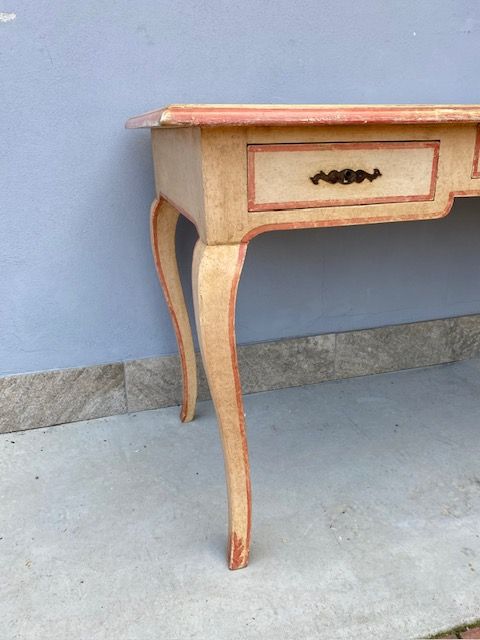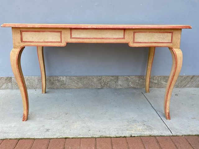 Scrittoio Tavolino Laccato Bianco Panna con Decori Color Rosso Mattone