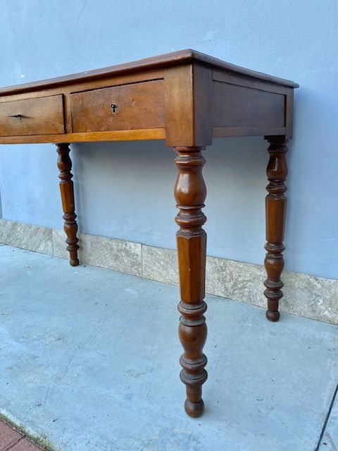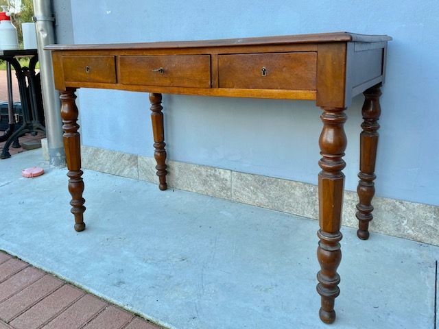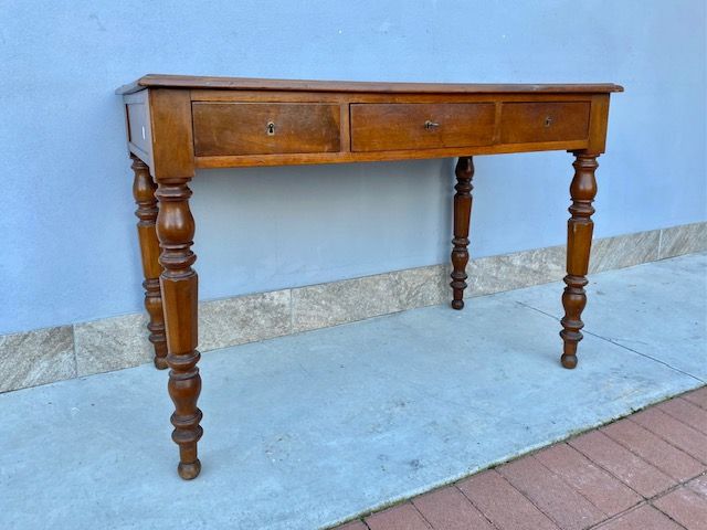 Scrittoio Tavolino Luigi Filippo in Noce, a 3 cassetti.