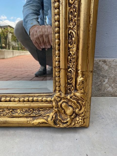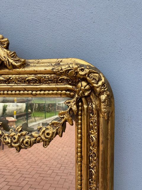 Specchiera con Cimasa in Stile Luigi Filippo Dorata.