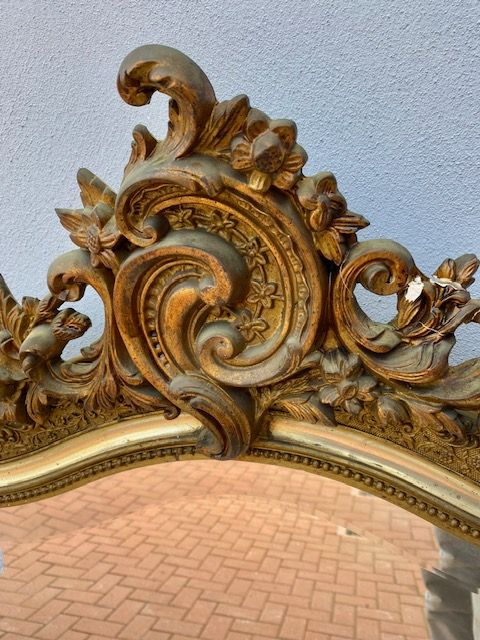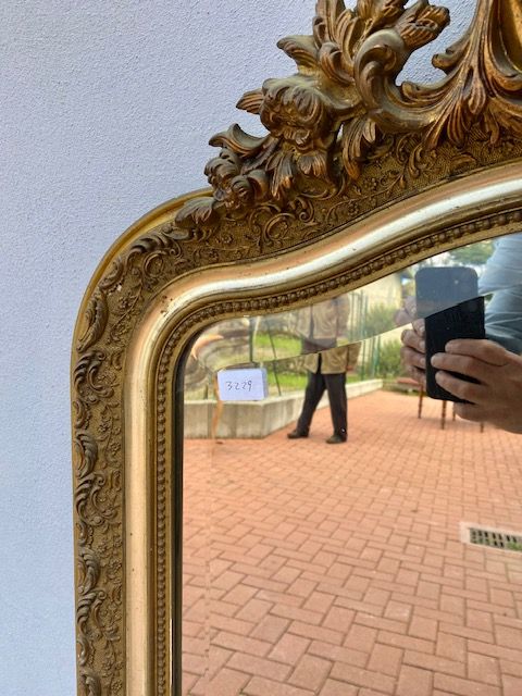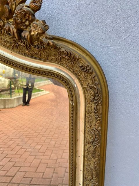 Specchiera Luigi Filippo con Cimasa in Legno e Pastiglia Dorata e Argentata.